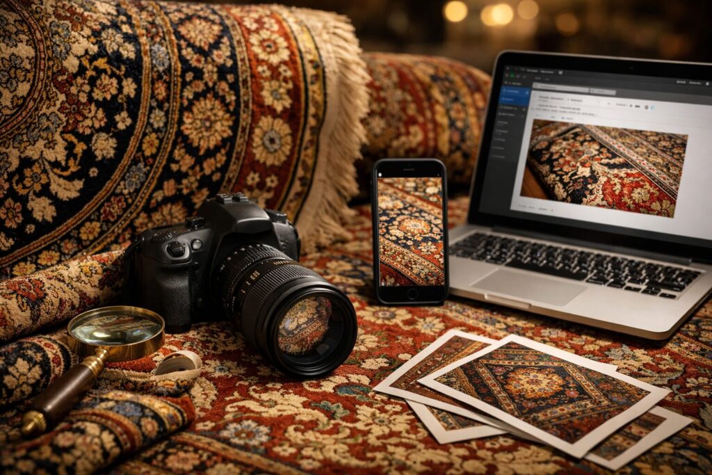 写真だけで査定可能?ペルシャ絨毯のLINE査定・メール査定の精度と上手な撮影法