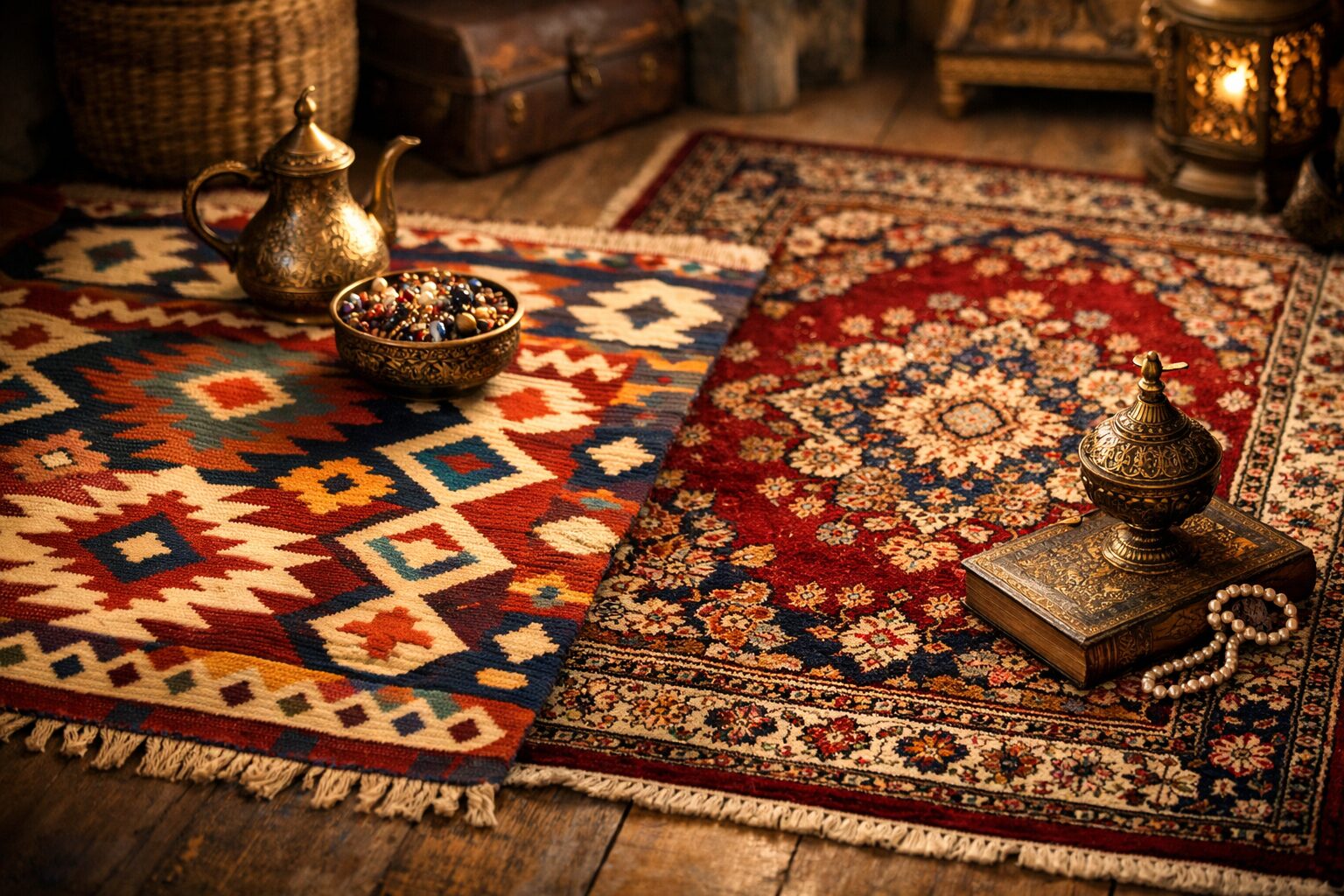 実家の整理や遺品整理をしていると、薄手で幾何学模様が描かれた不思議な敷物が出てくることがあります。それはペルシャ絨毯ではなく、「キリム」と呼ばれる別の種類の伝統的な織物である可能性が高いです。